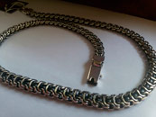 Full-fledged chain. Very popular among men «Ramses weaving», this weaving can also be seen on the Internet under the name «Double reverse Bismarck». Especially men's attention is attracted by thick silver chains of the weave «Double reverse Bismarck» with sizes close to the size in the photo. Nevertheless you can adjust almost any of parameters to your liking. There is also a choice of black or rhodium plated chains.