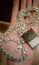 Full-fledged silver chain around the neck.