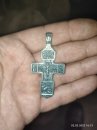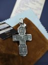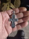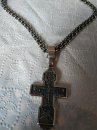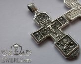 Depicted on the cross: The crucifixion of Christ. Holy Trinity. Archangel Michael. Holy Warriors. Tikhvin icon of the Mother of God. Orthodox cross. Big orthodox cross with blackening and gilding. Height: 8 mm