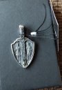 Silver pendant a shield with the Archangel Michael, this incense is made of silver with blackening.