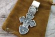 Зображено на хресті: Розп'яття Христове з майбутніми. Свята Трійця. Архангел Михаїл. Святі Воїни. Тихвинська ікона Божої Матері. Православний хрест.Висота: 8 мм